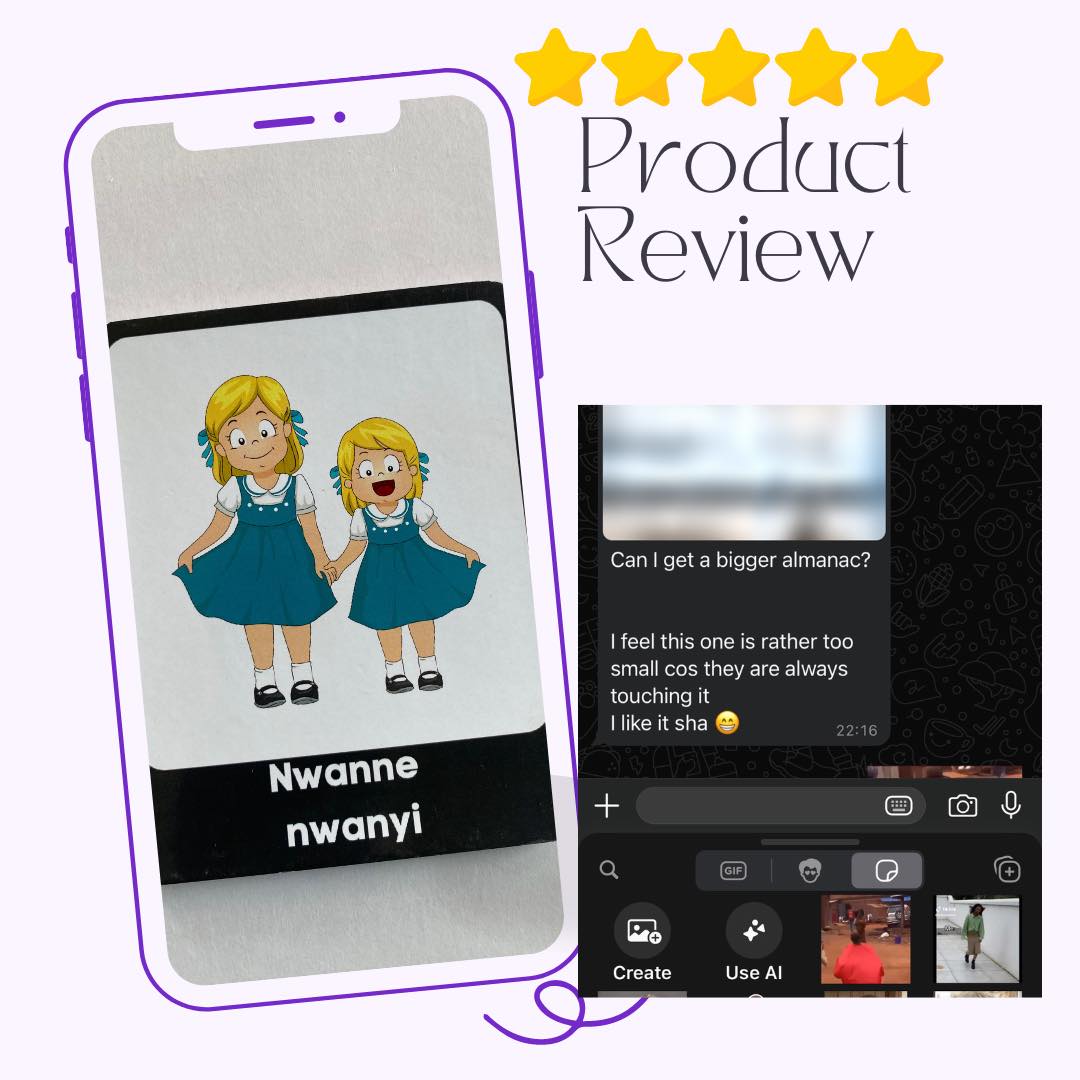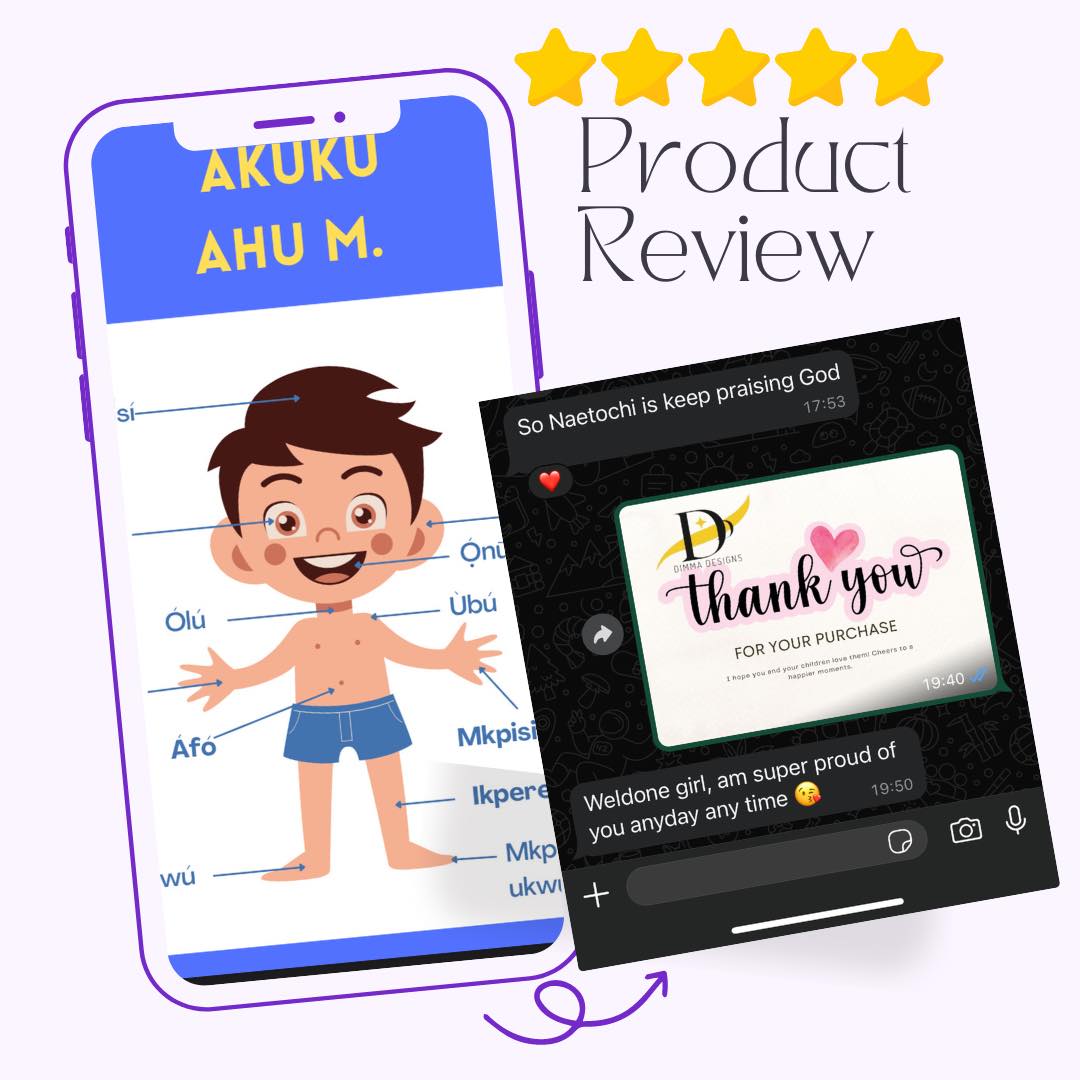 I create high-quality educational materials for schools, individuals, and children, with a focus on Igbo language learning. My most popular resources include flashcards, almanacs, e-books, and interactive learning tools designed to make Igbo language and culture fun and accessible.